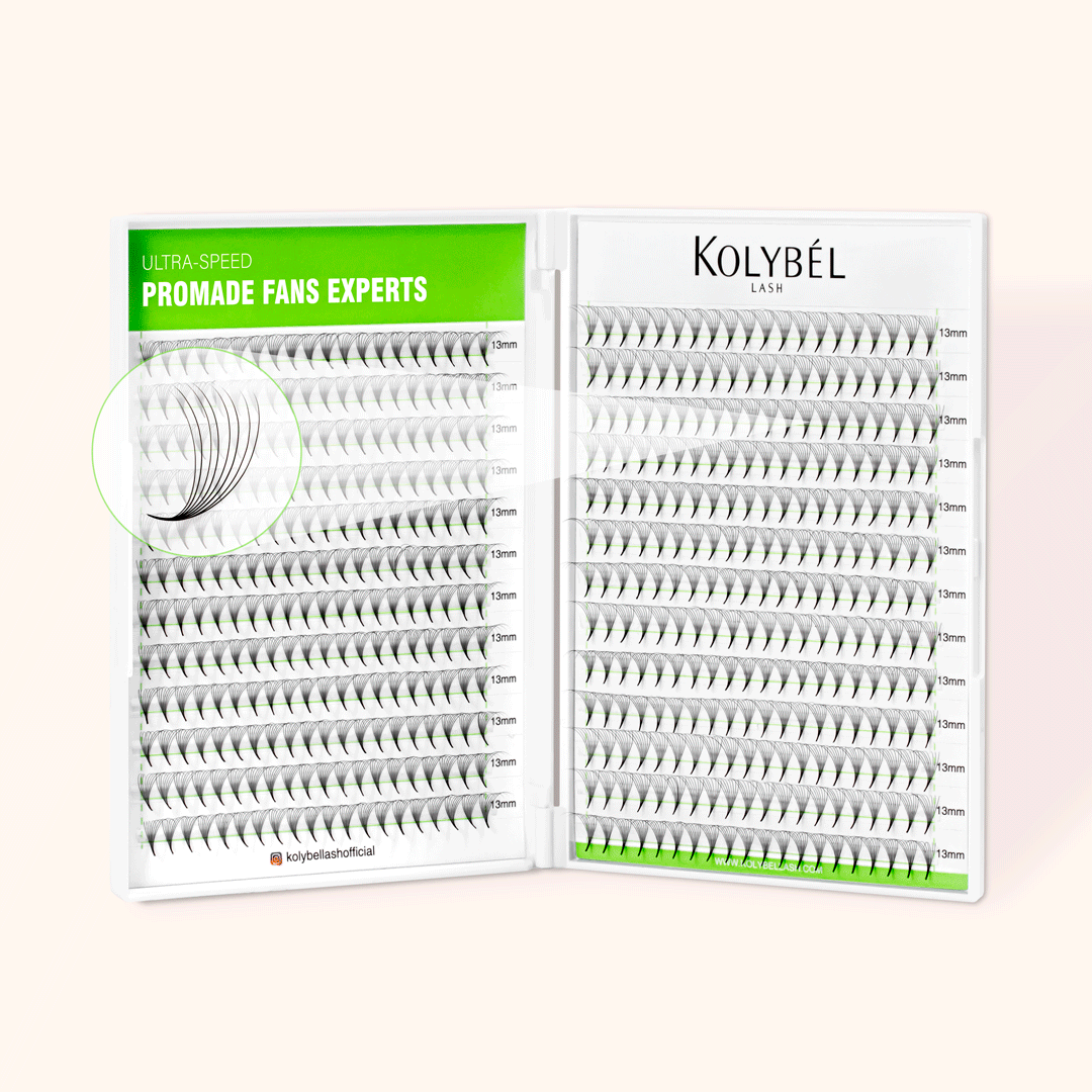 1.KOLYBEL large tray slim base middle stem Premade Volume Fans are perfect for volume lashes with a soft,natural touch.